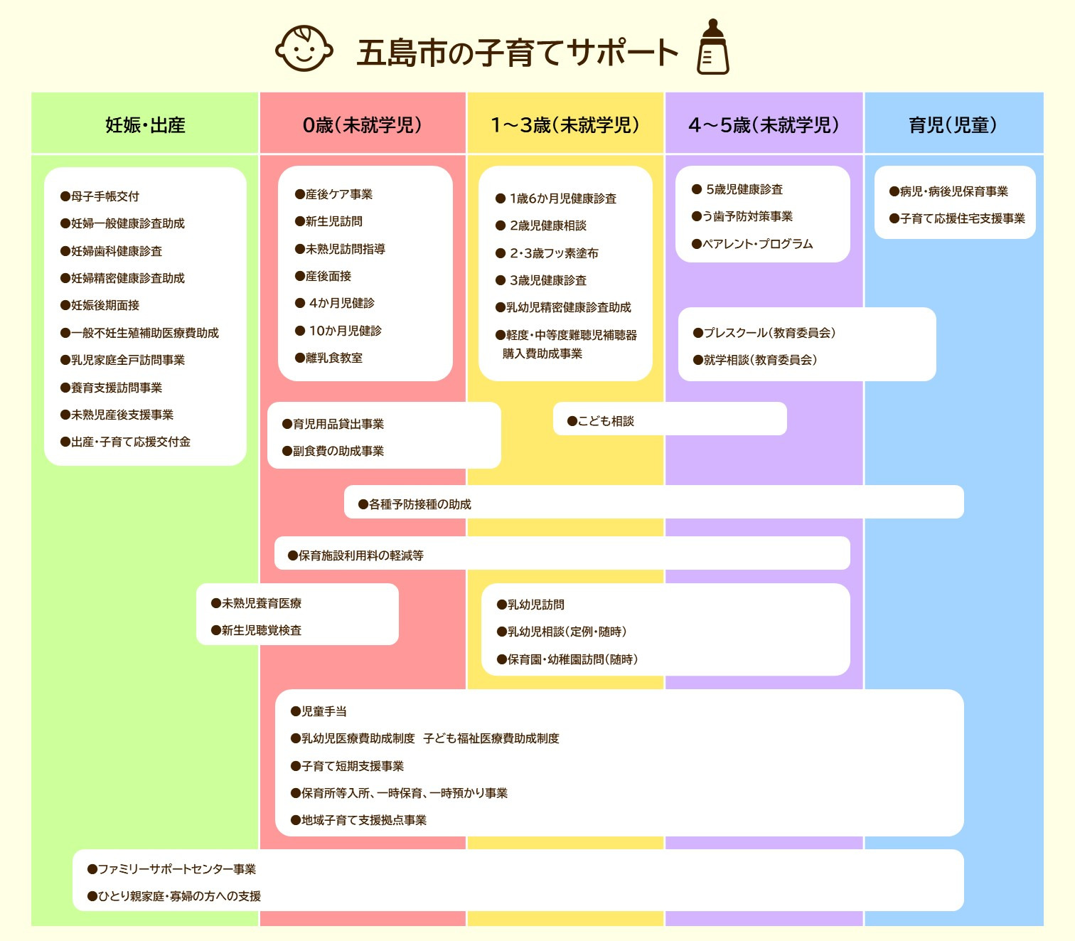 五島市の子育て支援は、妊娠、出産、子育てまで切れ目がありません。保健サービスの案内や育児に関するさまざまな相談に対応しています。