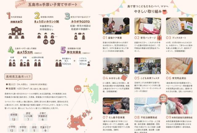 五島市の子育てに役立つ情報を一冊にまとめました。UIターンの方もぜひ手に取ってご覧ください。