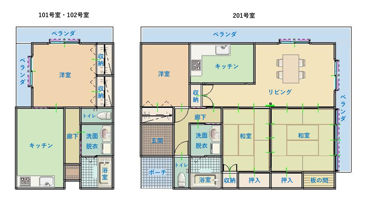 ●部屋数:3部屋(1階101号室、102号室/2階201号室)