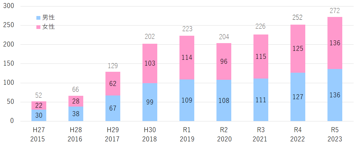 2018年度(令和30年度)から6年連続で年間の移住者数が200人を超えています。