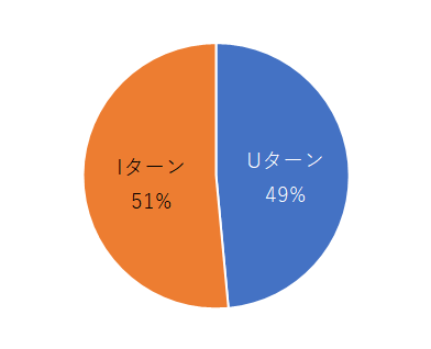 2023年度(令和5年度)は、Uターンが49%、Iターンが51%でした。