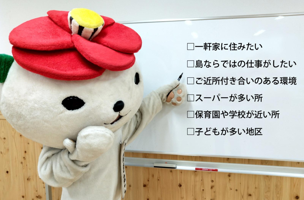 こちらでは先輩移住者の実体験を元に、移住までの流れを五島市のイメージキャラクター「つばきねこ」と一緒にご案内。
