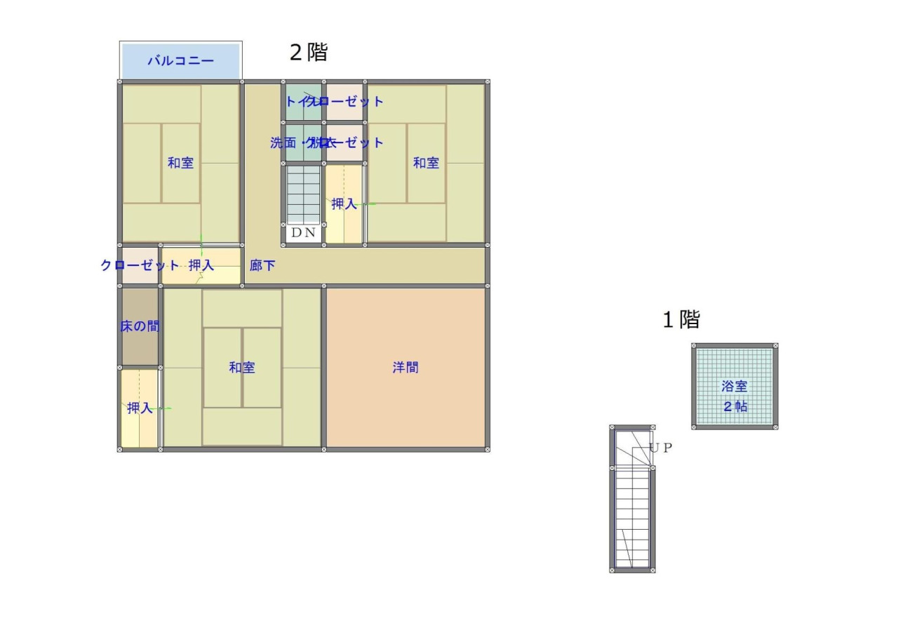 - ・1階は旧店舗部分(本屋)、居住部分は2階、風呂は1階